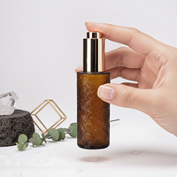 Gama completa 10-100mL Botella de vidrio agrietado con hielo marrón ámbar con cuentagotas de bomba para una línea completa de productos para el cuidado de la piel