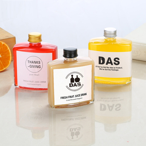 Populaire Glazen Fles 200Ml 250Ml 350Ml Schuine Schouder Sap Drinken Koude Brouwsel Koffie Fles Met Aluminium Deksels